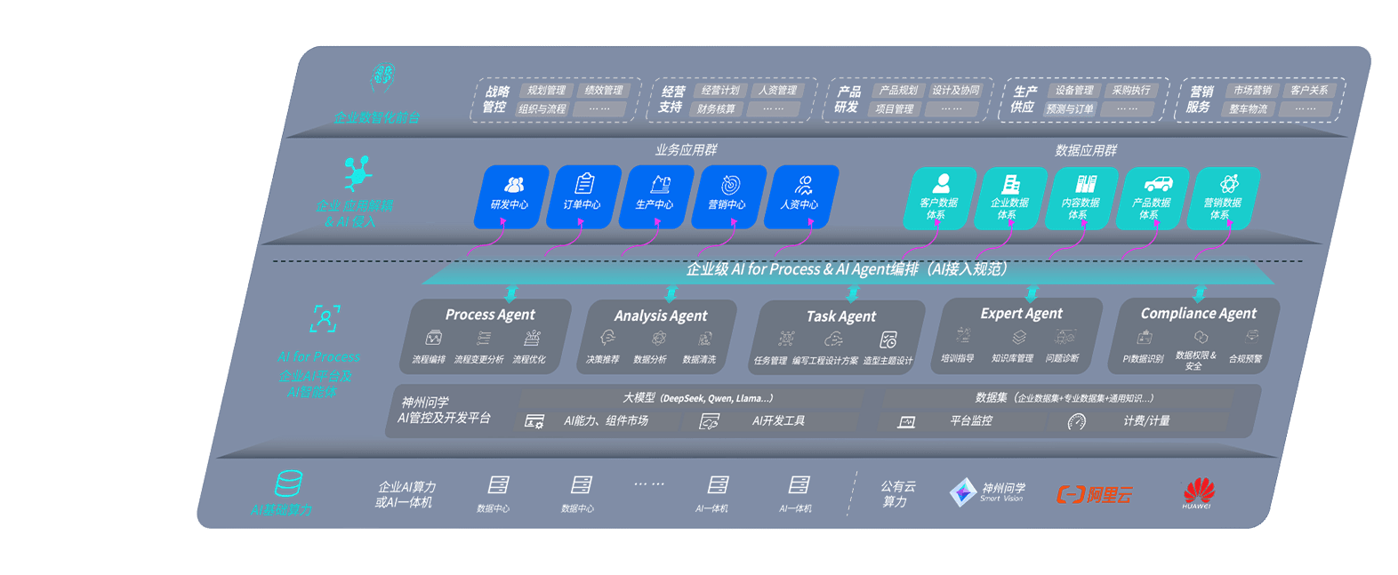 端到端的一站式AI工作空间深度融合了从企业战略规划到日常经营的全流程业务板块,,定向解决车企内部领域多、、、部门多、、链条长、、、、场景碎片化等难题,,,,支持车企快速构建以AI为核心的生产力写作体系,,,,实现任务执行与AI能力的无缝集成与交互